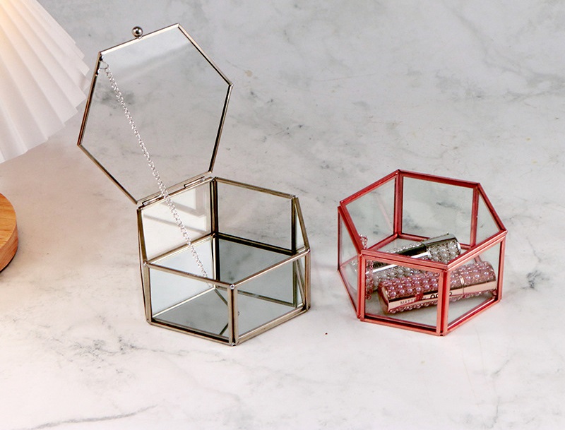 Hexagonal jewelry glass artifact cover box Wedding ring Decoration storage box Spot glass gift box