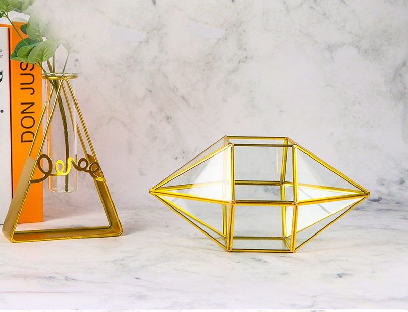 Olive shape copper glass artifact greenhouse succulent cover jewelry gift candy box package glass ornaments