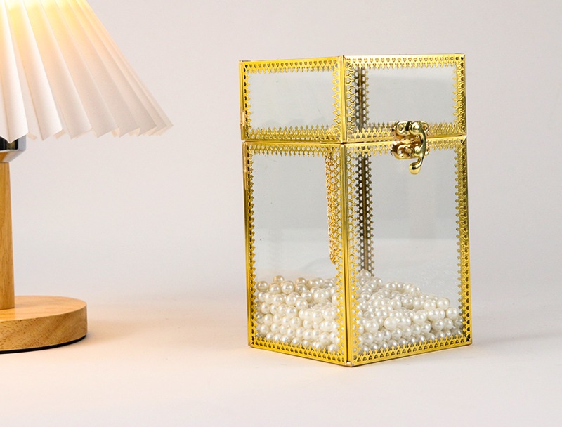 Gold quadrilateral dust proof Makeup Brush organizer box lid glass eyebrow pencil eyeliner Pearl storage canister